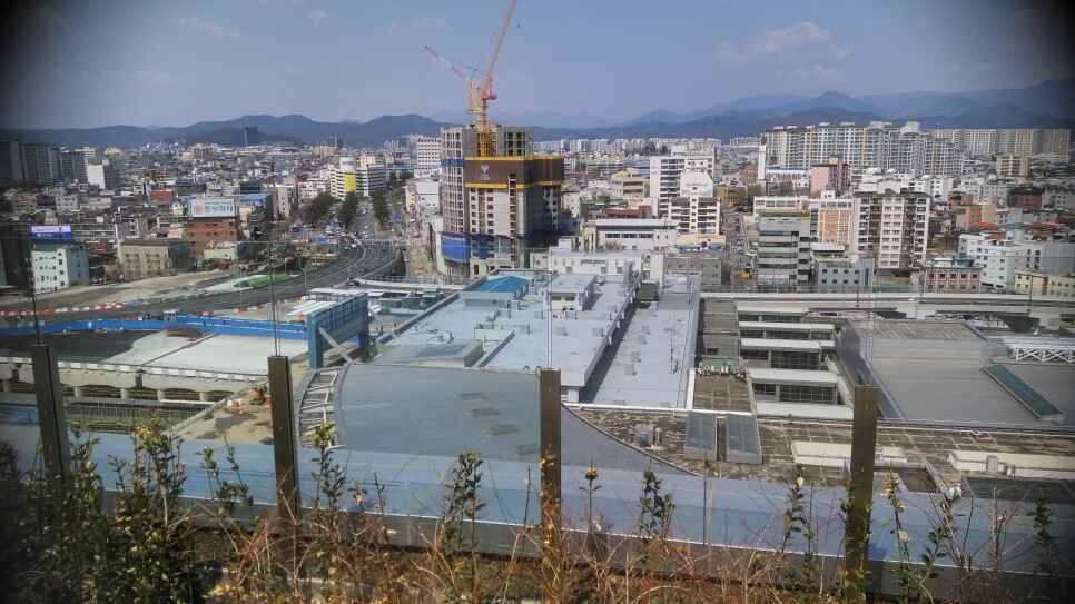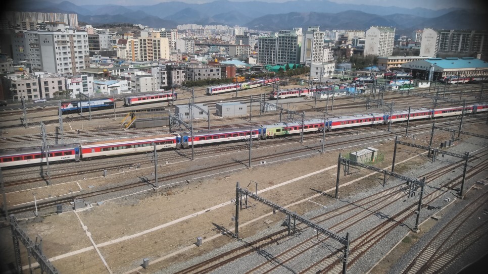 백화점 과 대구 동대구역이 같이 있어 백화점 옆으로 기차들이 보인다..