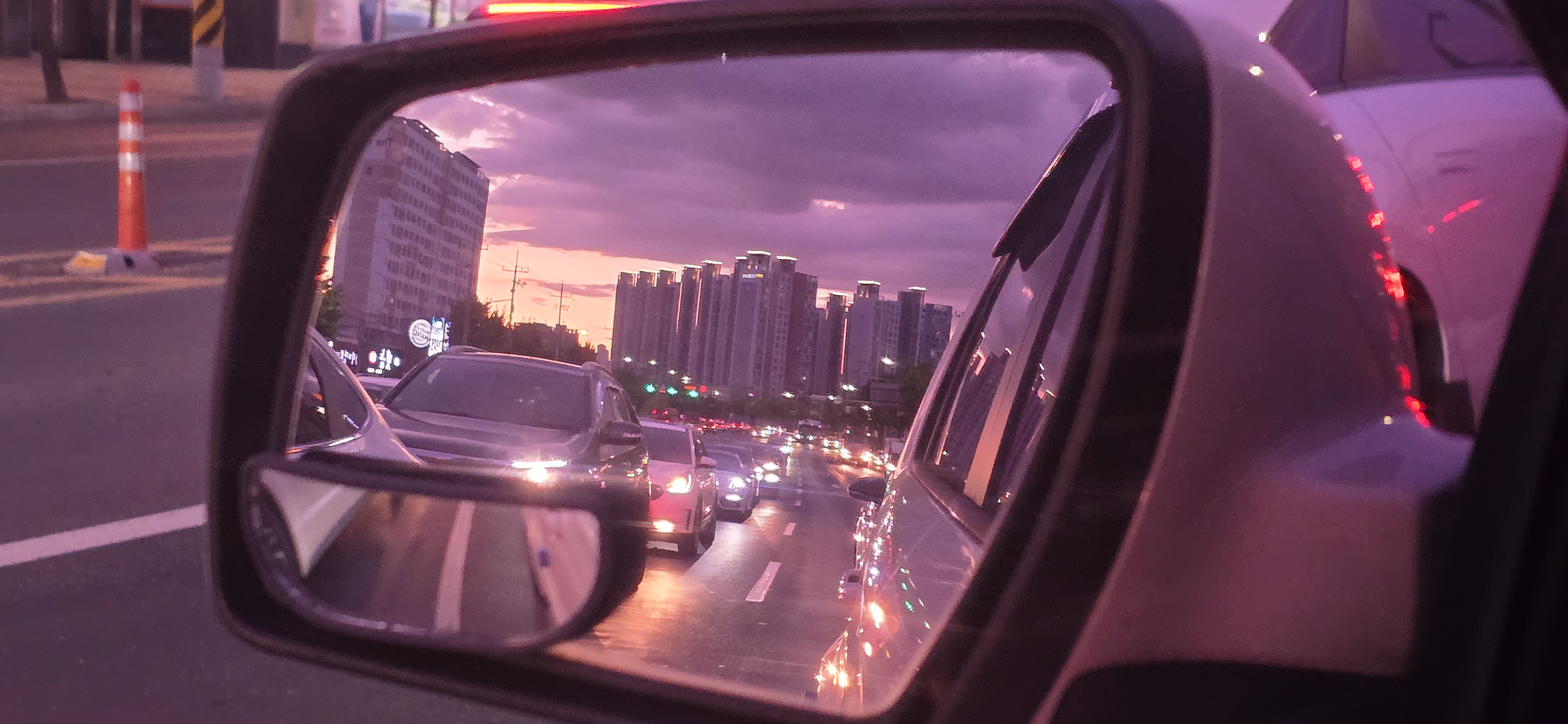 신호대기중에 사이드미러에 찍힌 풍경