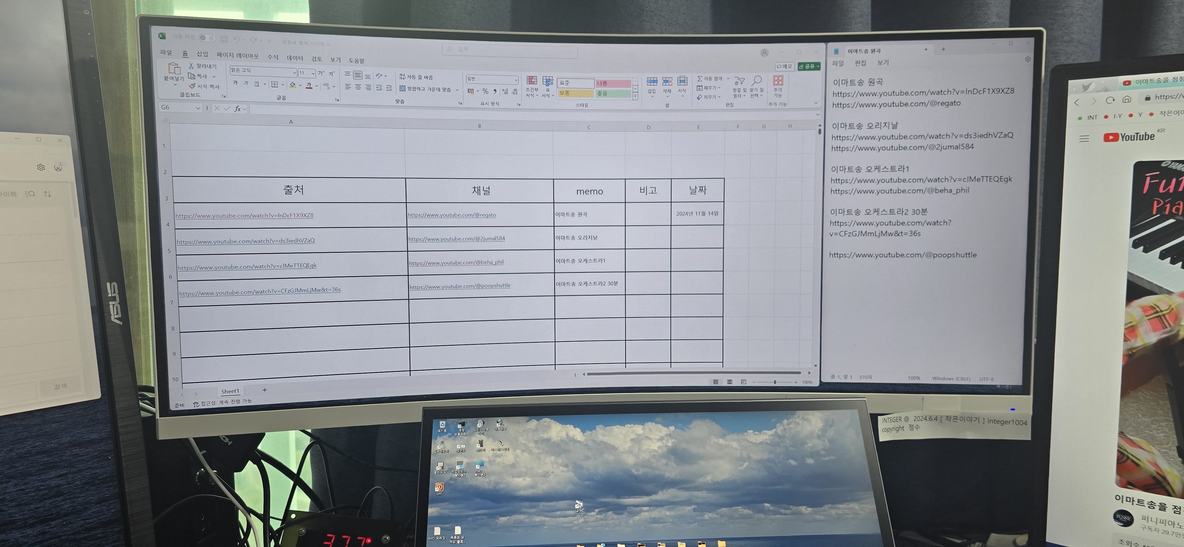 메모장에 기록한 사이트를 다시한번더 엑셀에 깔끔하게 보기 좋게 음원 소스 사이트 및 음원 채널 사이트 그리고 언제 날짜 까지 깔끔하게만 정리해두면...