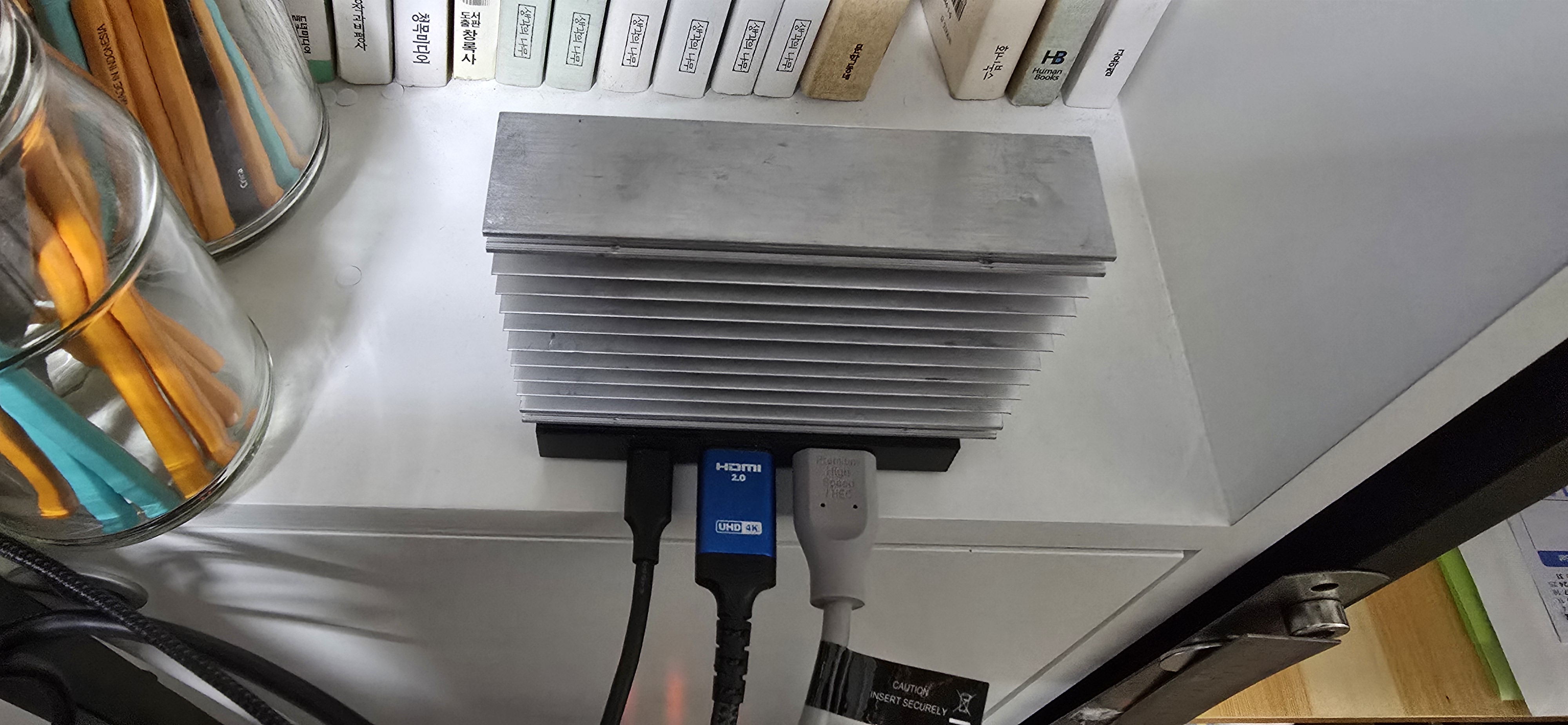 너무 뜨거워서 장비에 무리갈까봐... 방열판으로 대체... 엄첨큰 방열판.....