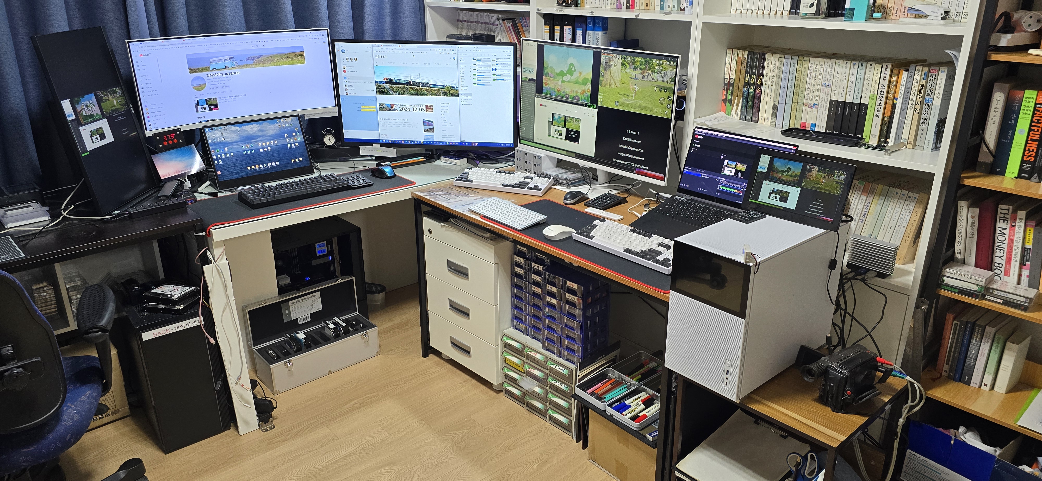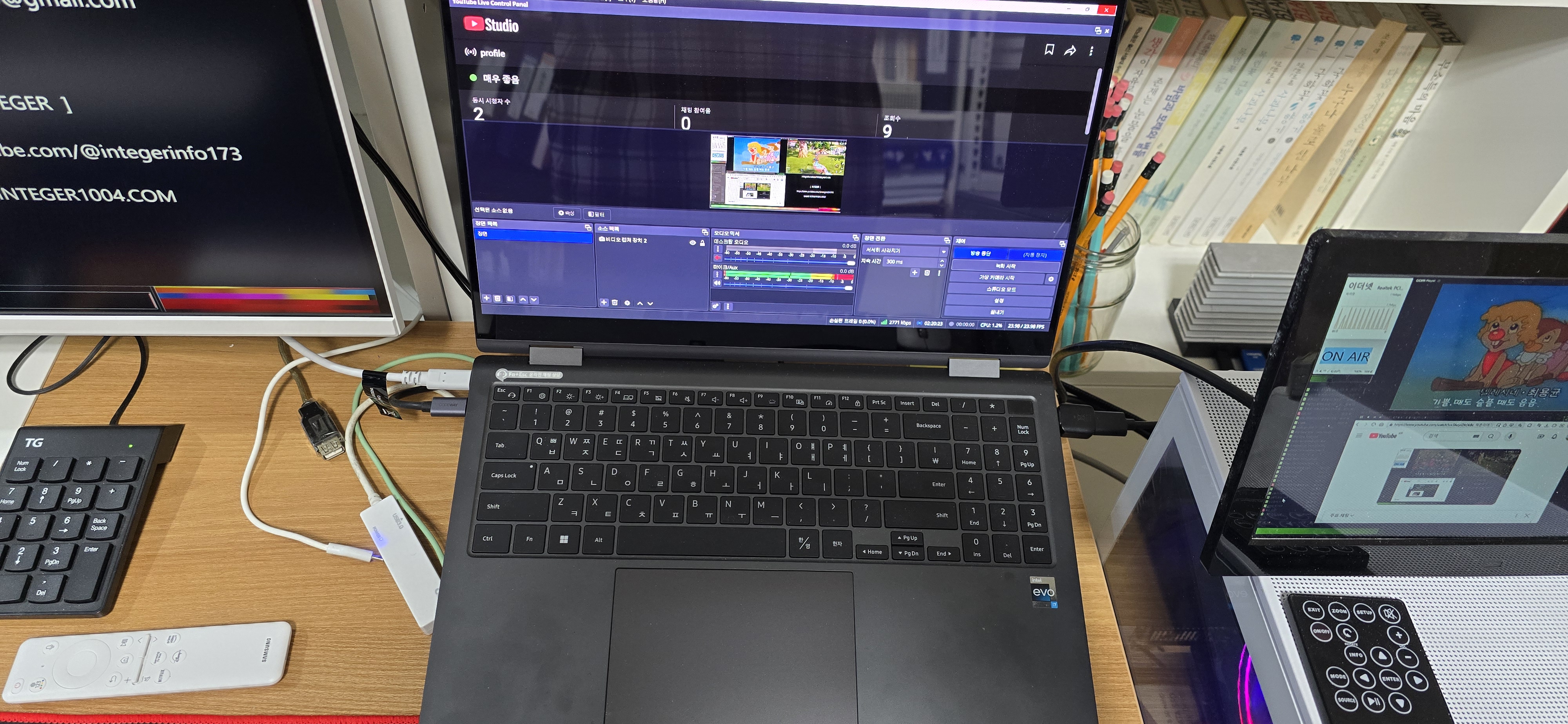 유튜브 라이브 실시간 방송 장면.... 장비들이 정신 없이 돌아가네요...