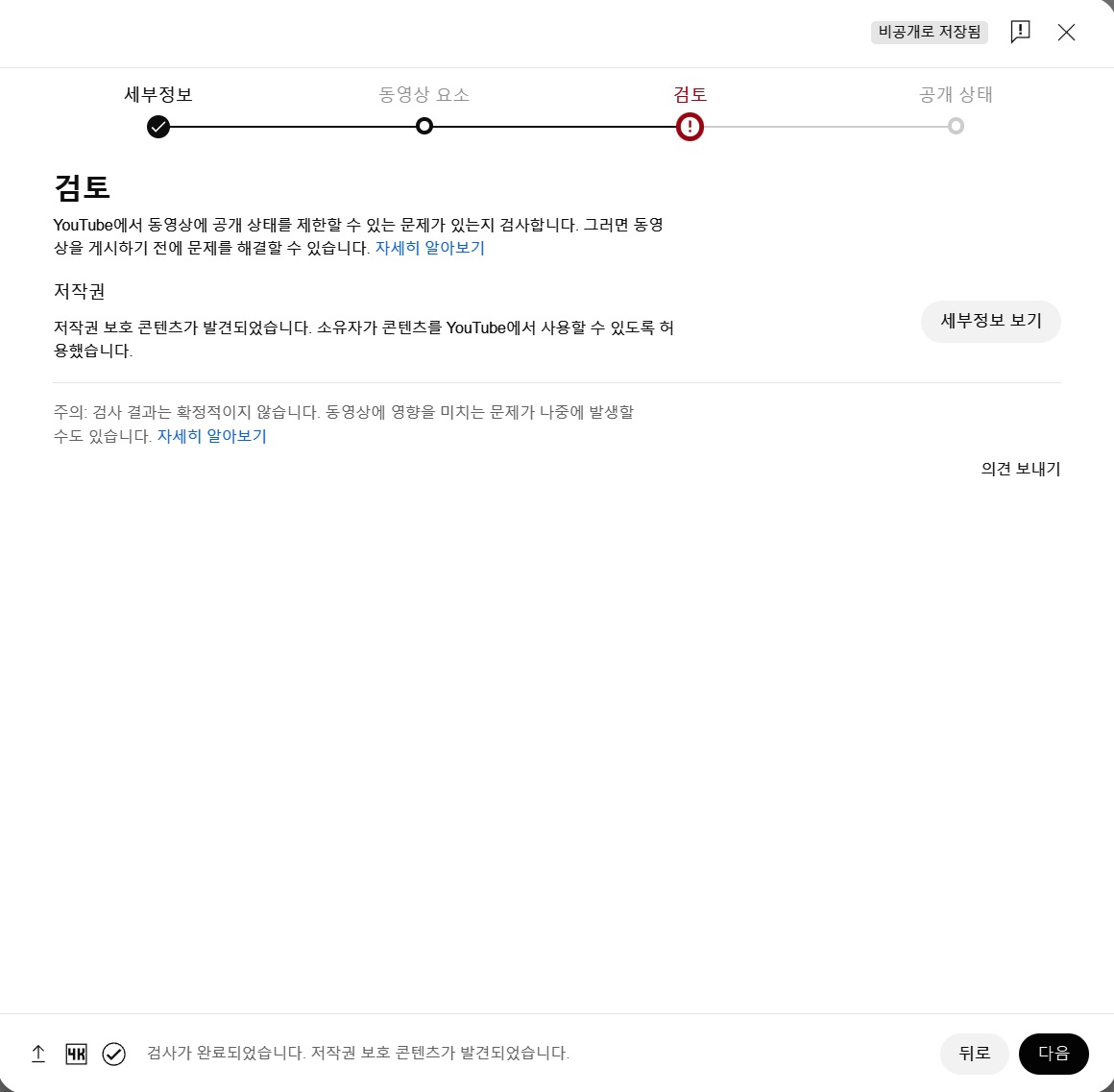 소유자가 유튜브에서 사용할수 있도록 허용했다는 메세지