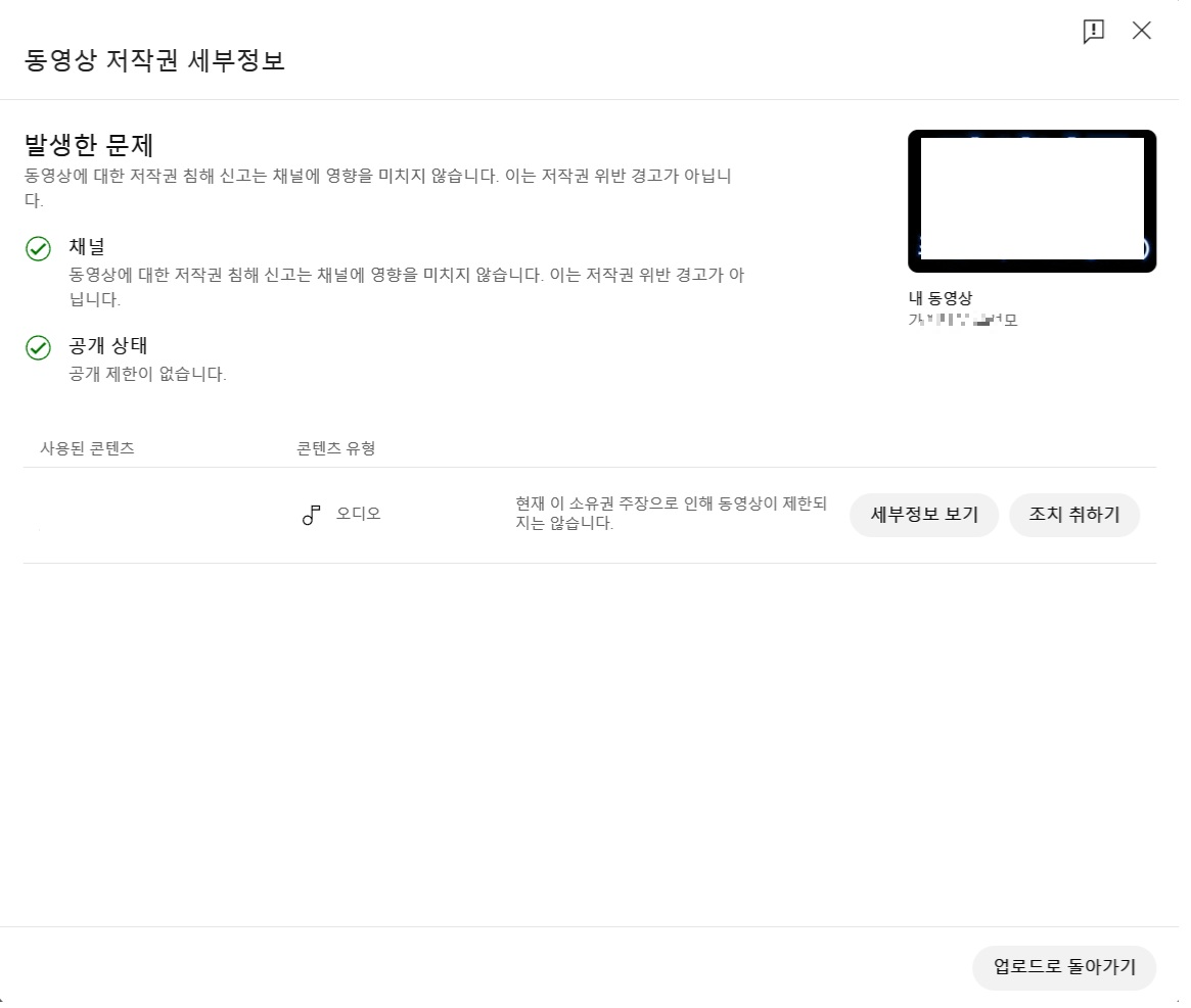 동영상에 대한 저작권 침해신고는 채널에 영향을 미치지 않습니다..