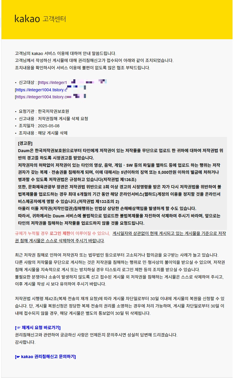 저작권 경고를 받았습니다.