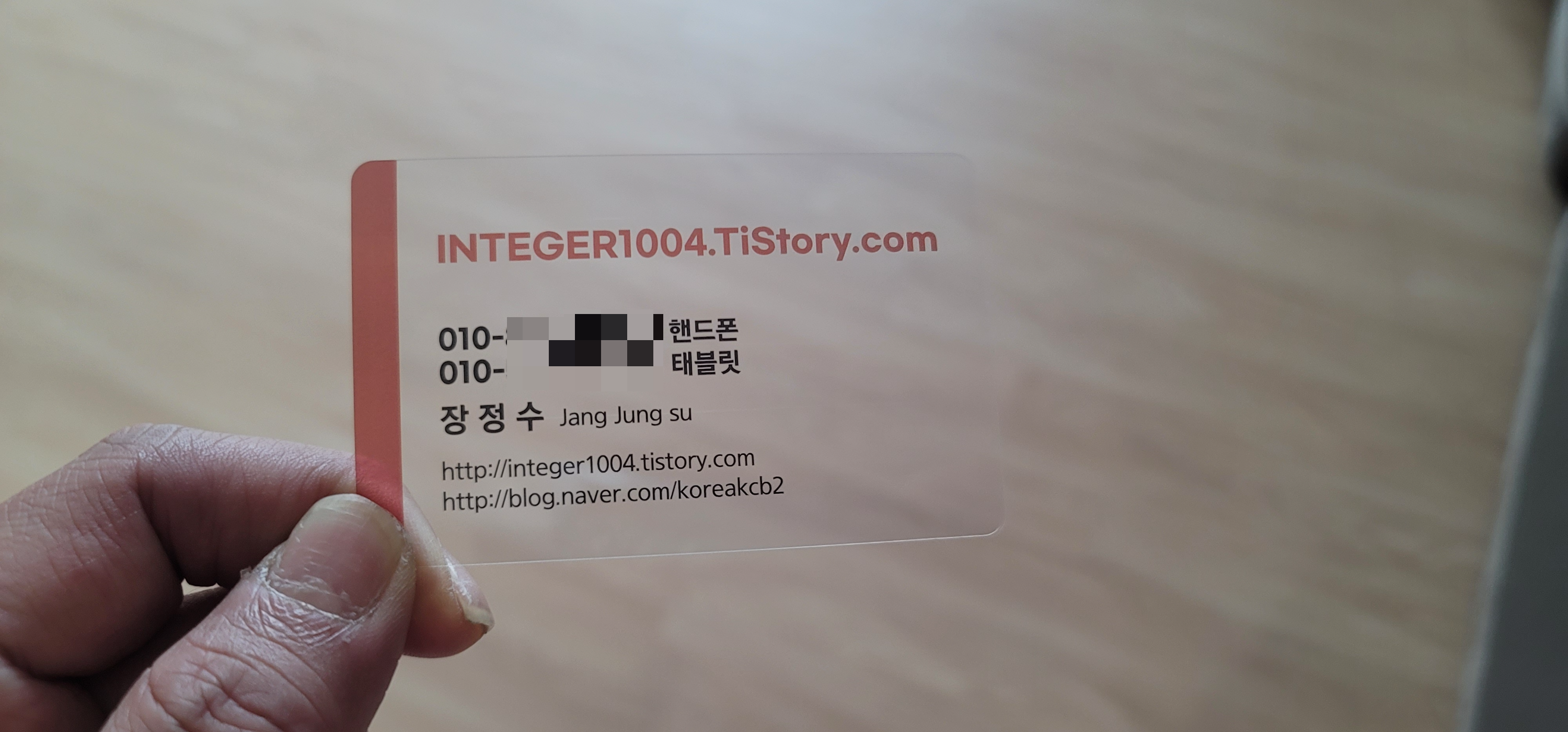 이번에 투명으로 했어니 다음에는 투명이 아닌 카드 형태의 명함으로...